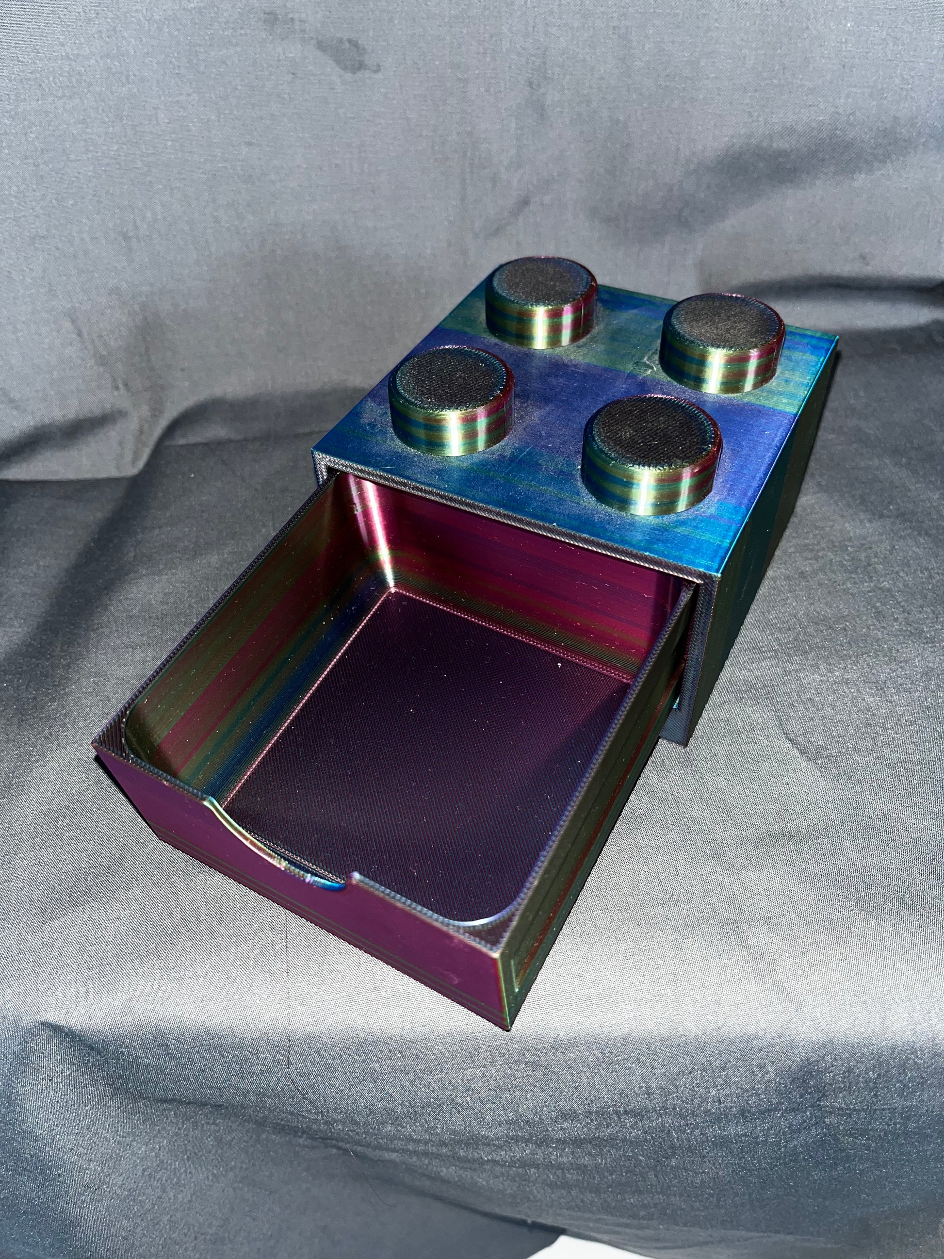 Large sized 2x2 brick storage drawer , colour is gradient red blue and green Silk.